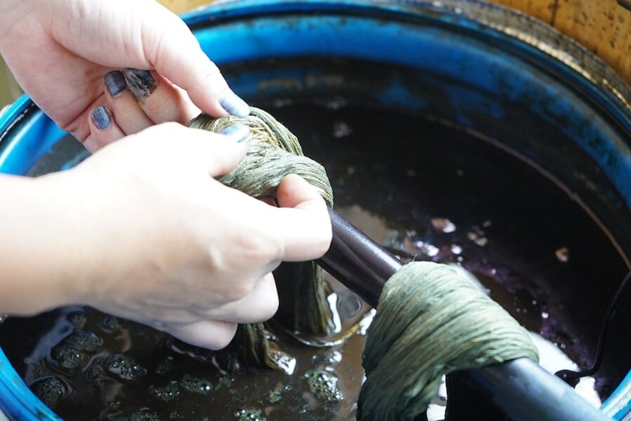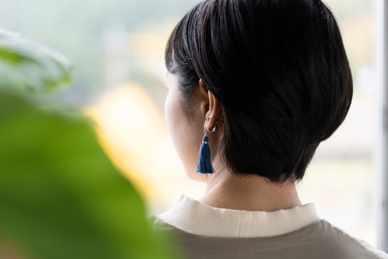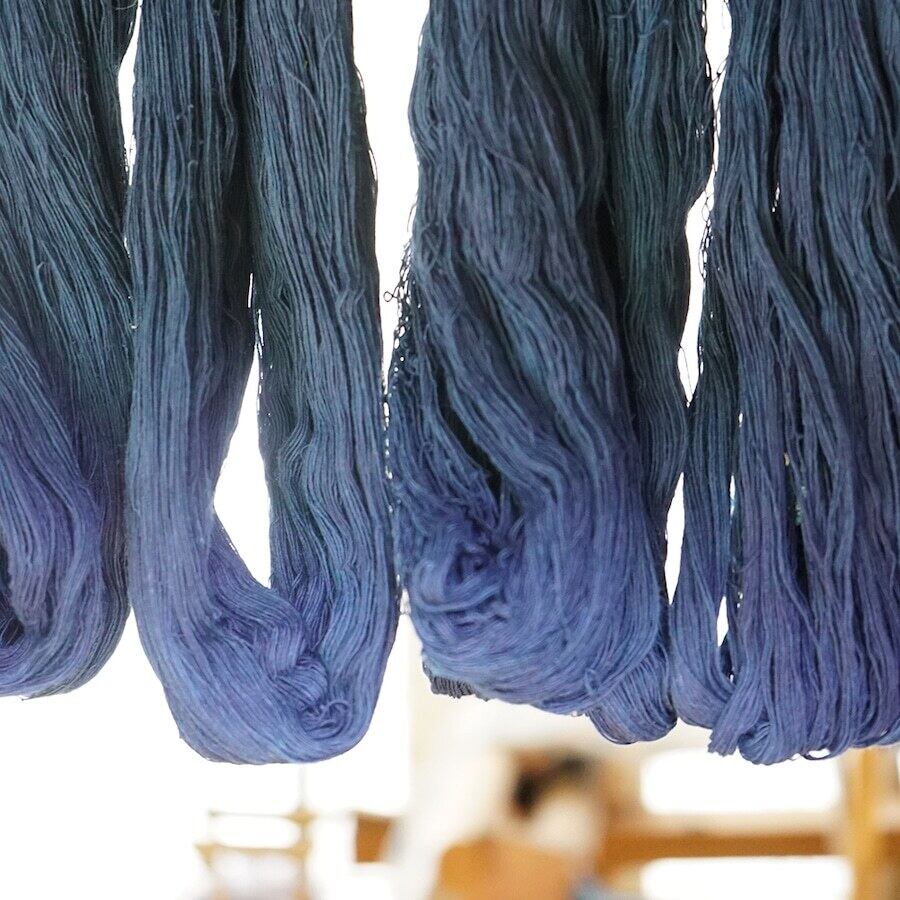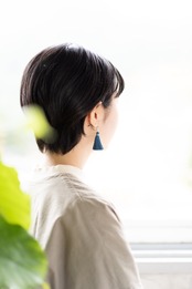 岡山県の北東端に位置する西粟倉村の作家さんの作品で、西粟倉村で採れた藍で染められた本藍染めの糸を丁寧に束ねたシンプルなイヤリングです。