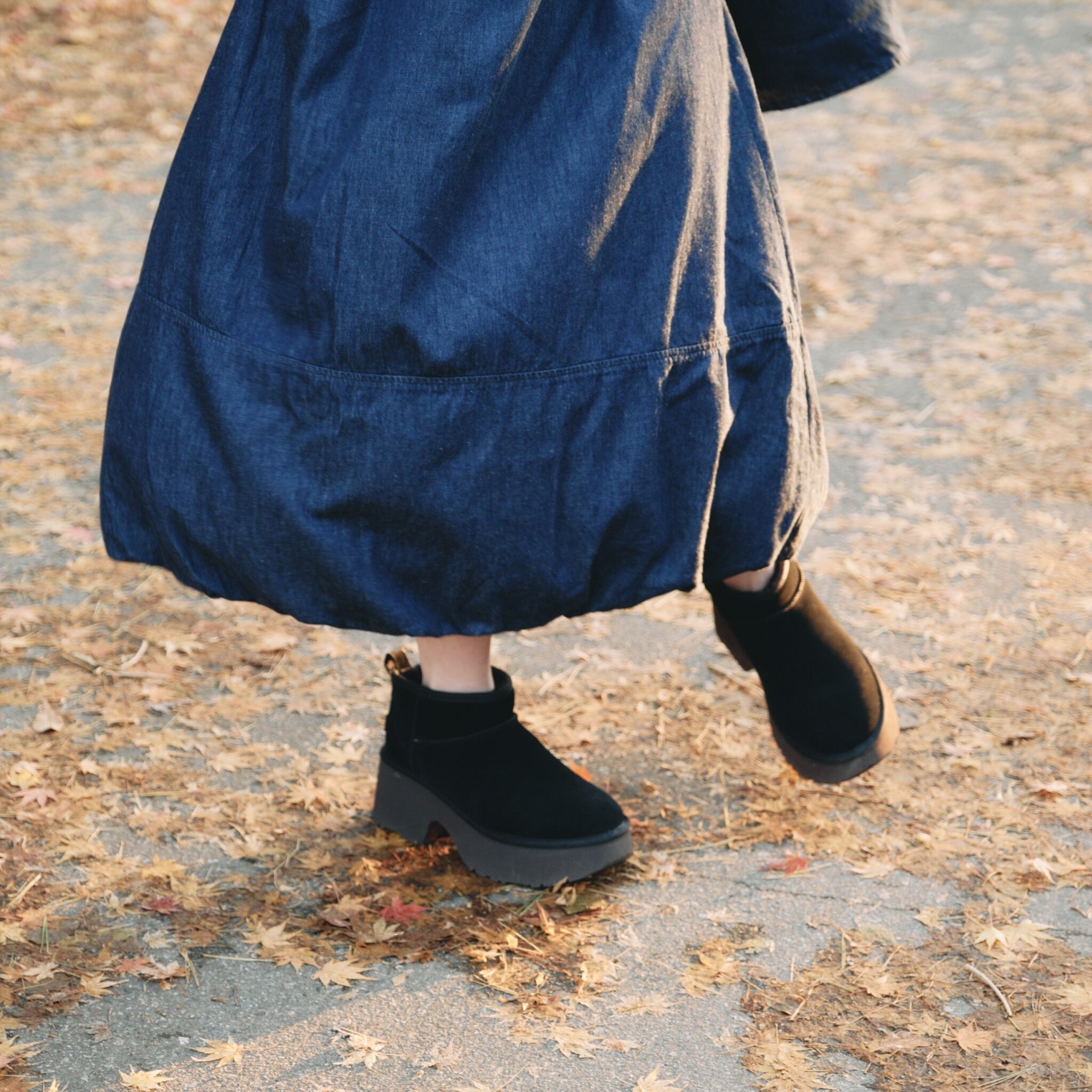 シルエットにメリハリのつけにくいバルーンスカートですが、ウエストのタックを内折りで合わせることでウエスト周りをすっきりと見せられて下腹部はしっかりと隠してくれるデザインです。ハイウエストと裾の広がりの相乗効果で細見えしてスタイルアップできます♪着用時にくるぶしが隠れない程度の丈感です。